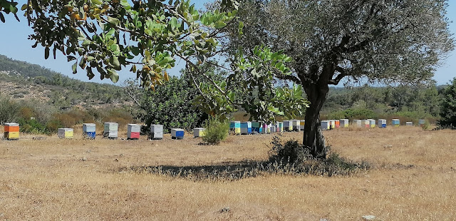 I wanted Dr Manolis to explain the results just to make sure I was reading them correctly and didn't have anything to worry about but he wasn't going to be back on duty until 4.00pm which was a bit of a bugger so we decided not to go back home but go for a bit of a wander and waste some time and then return. We had seen that the old illegal and ramshackle camp site just beyond the Baths of Afrodite had been dismantled and had now been replaced with an official camp site with teepee's and a bar and restaurant. There are differing opinions about this but we decided to see for ourselves what had been done. The Baths of Aphrodite were absolutely packed - you wouldn't know that there was any difference in tourists numbers from any other year looking at the numbers there. The old caravans and temporary makeshift holiday homes have indeed gone although there is still some evidence as to where they had been and the new site is there although I would guess it still needs finishing off although it would appear to be open. It looks new, it looks a bit bare and in the heat looked in need of much more shade but I guess in time it will soften and develop into quite a nice looking place to go pitch your tent.